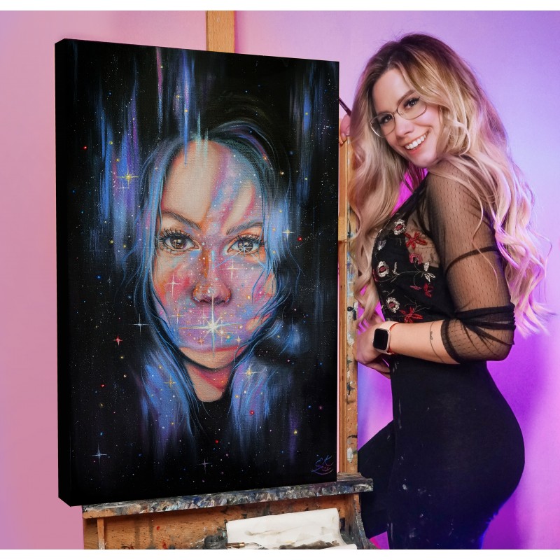 Použité barvy: Olejové barvy na plátně, zdvojený masivní rám, výška 4cm