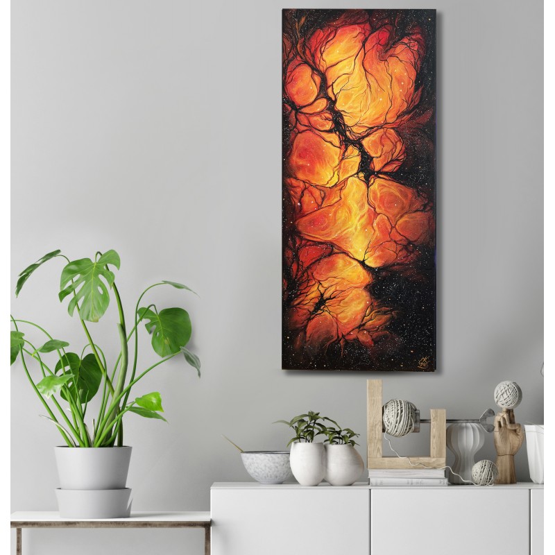 Tištěná kopie, je speciálně oskenovaný mnou malovaný obraz, který je následně vytištěn na bavlněné plátno. Plátno je napnuté na masivním dřevěném rámu.