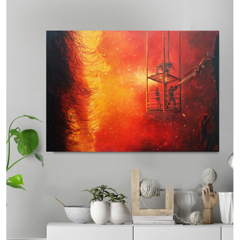 Tištěná kopie, je speciálně oskenovaný mnou malovaný obraz, který je následně vytištěn na bavlněné plátno. Plátno je napnuté na masivním dřevěném rámu.
