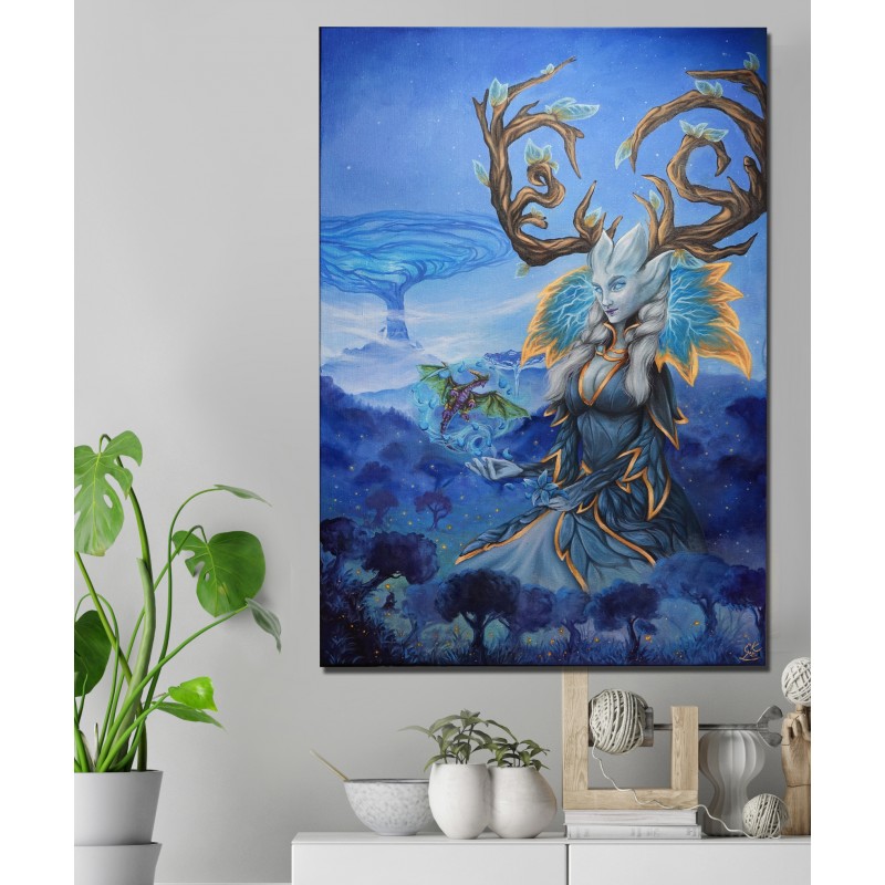 Tištěná kopie, je speciálně oskenovaný mnou malovaný obraz, který je následně vytištěn na bavlněné plátno. Plátno je napnuté na masivním dřevěném rámu.