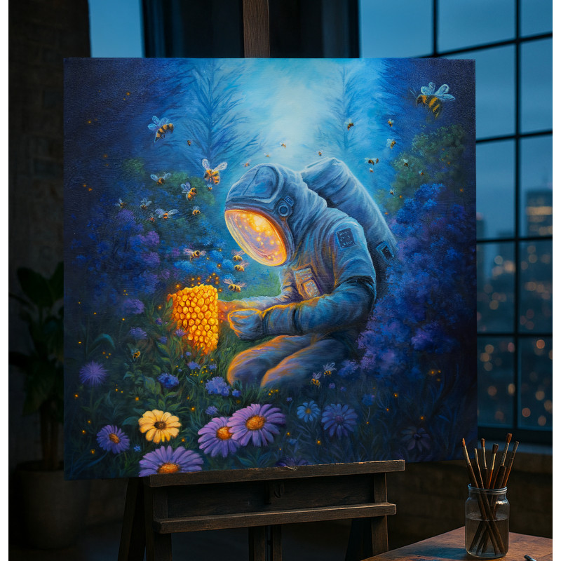 Tištěná kopie, je speciálně oskenovaný mnou malovaný obraz, který je následně vytištěn na bavlněné plátno. Plátno je napnuté na masivním dřevěném rámu.